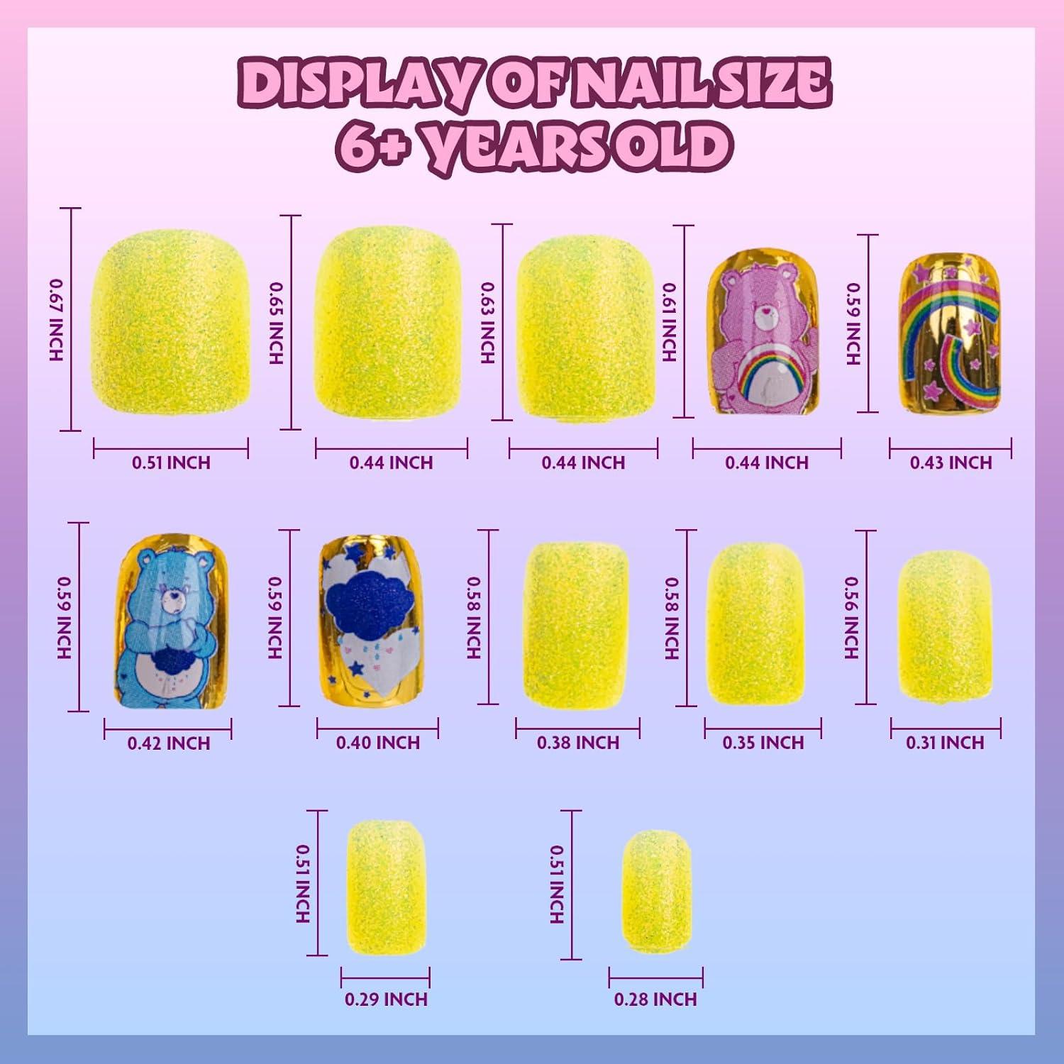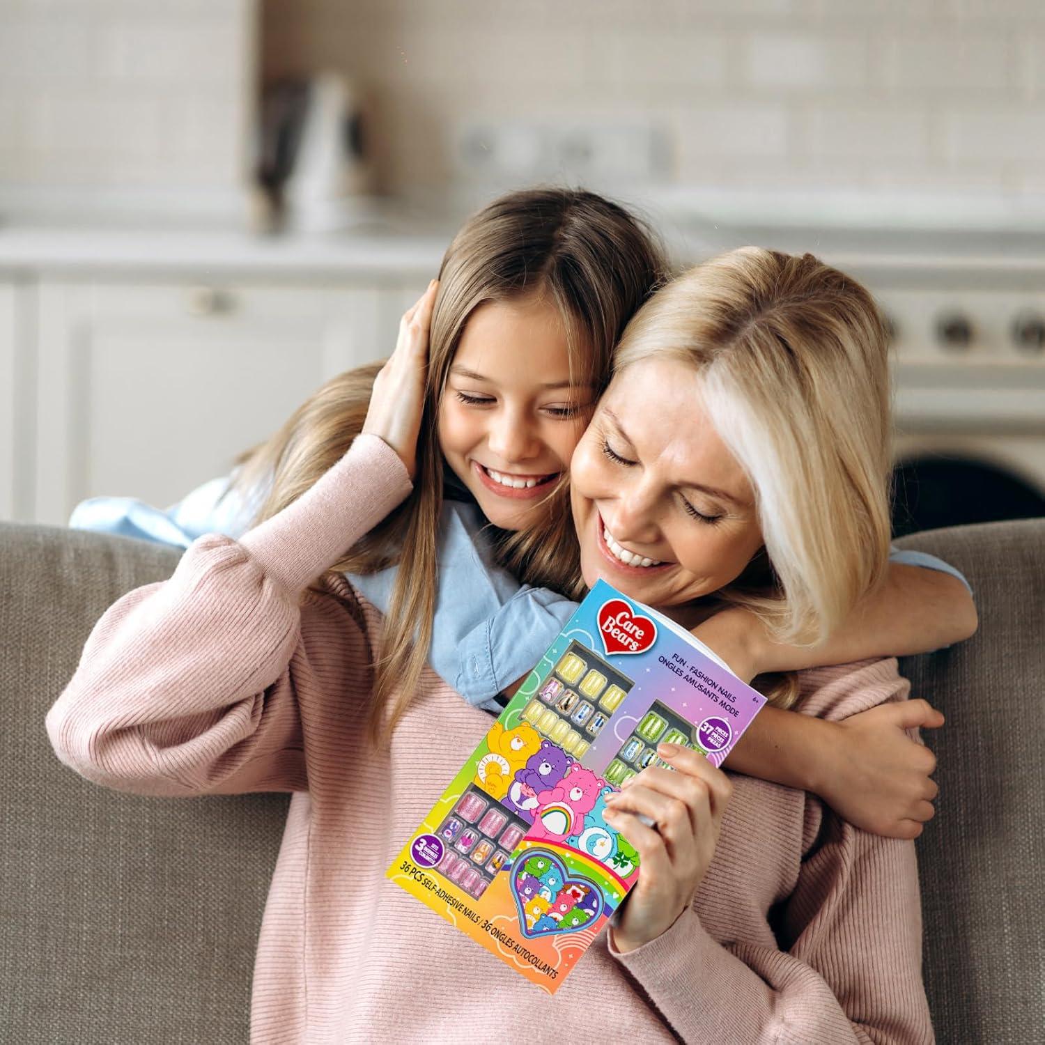 Care Bears 36 pcs Press on Nails for Kids | Pre-Glued & Fake Nails with Nail File for Girls | Birthday Gifts for Ages 6+ by Townley Girl