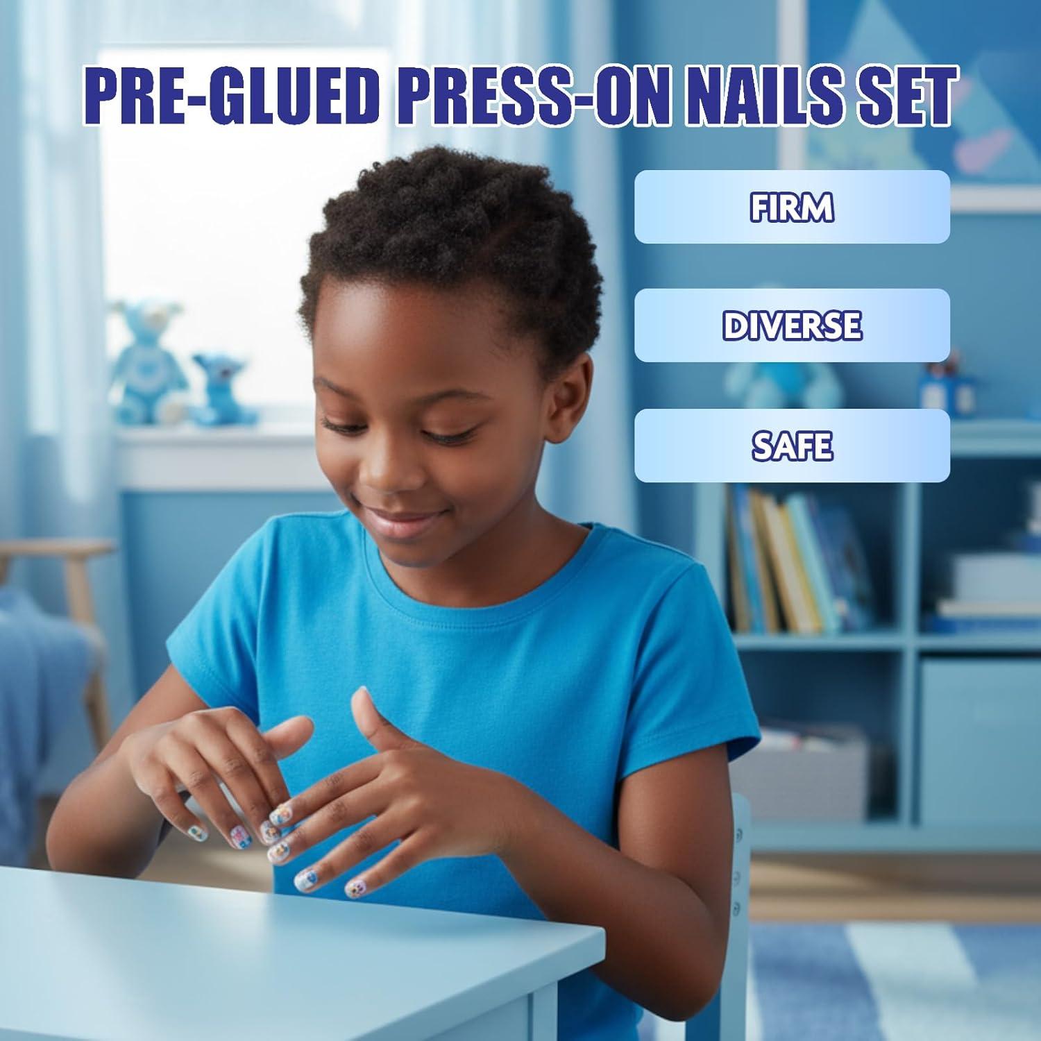 EASY TO APPLY, EASY TO REMOVE: The pre-adhesive backing on the press-on nails are easy to use and apply to nails. With a variety of nail sizes, they are sure to fit all little hands, and if it's a bit too large, they can be cut or filed to size. Certainly allows your little ones to feel their independence as they become their very own nail techs in the comfort of their own home.